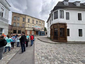 Nachdem der Dreh unserer beiden Krimi- und Gruselfilme abgeschlossen war, setzten sich die Workshopleiter an den Schnitt des Videomaterials. Währenddessen bekamen wir eine spannende Führung durch die verschiedenen Drehorte in der Filmstadt. Bei dieser konnten wir hinter die Kulissen bekannter Filme schauen und bekamen Einblicke, wie bestimmte Szenen gedreht werden. Auch hier durften sich die Jugendlichen selbst ausprobieren und kurze Ausschnitte aus „Fack ju Göthe“ oder „Das Kanu des Manitu“ nachspielen.