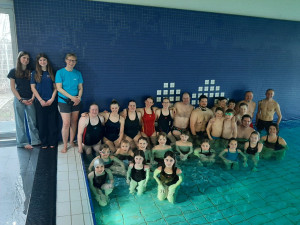 Im Sportbecken (5 Bahnen, 25m Länge wie in Baienfurt) wurde noch für ein paar Minuten eingeschwommen, die Flossen nochmals ausprobiert und Starts geprobt.